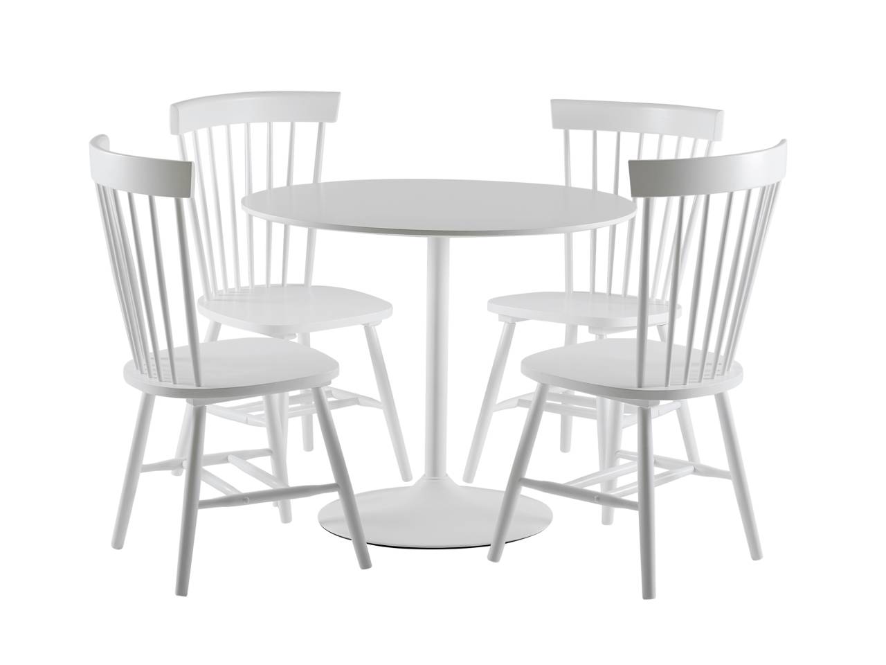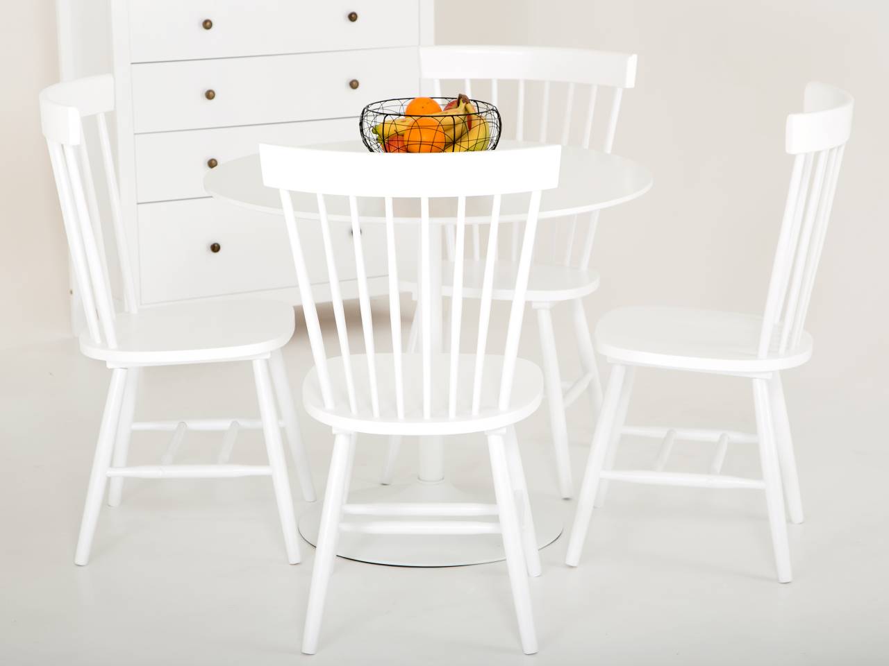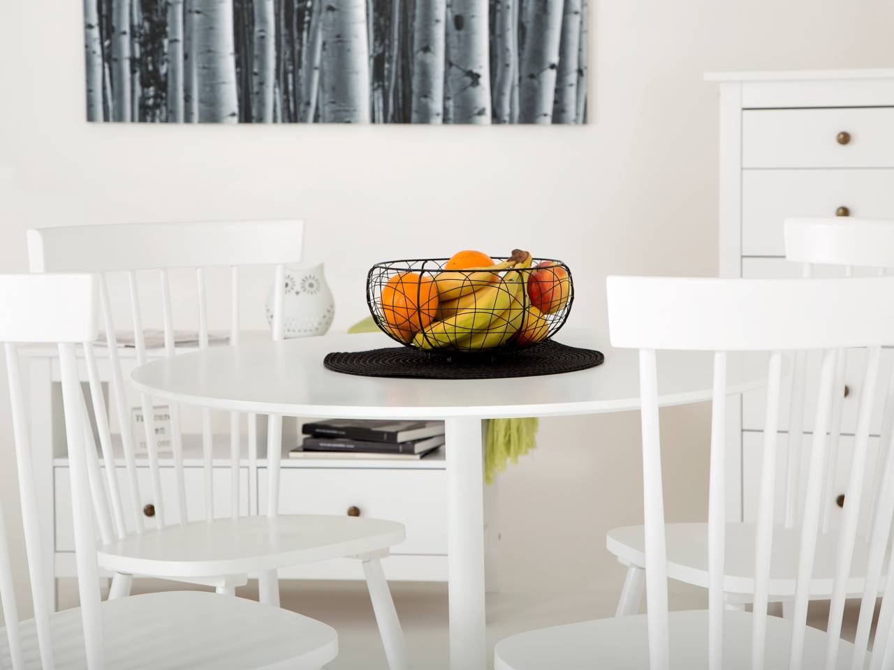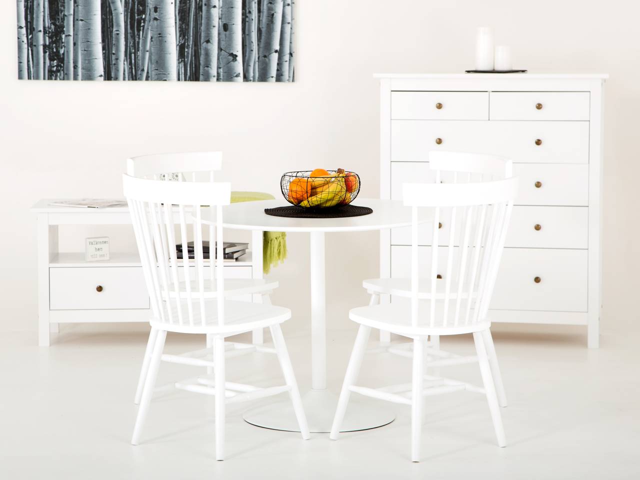 Runt matbord i vitmålad Mdf med vit pelarfot.