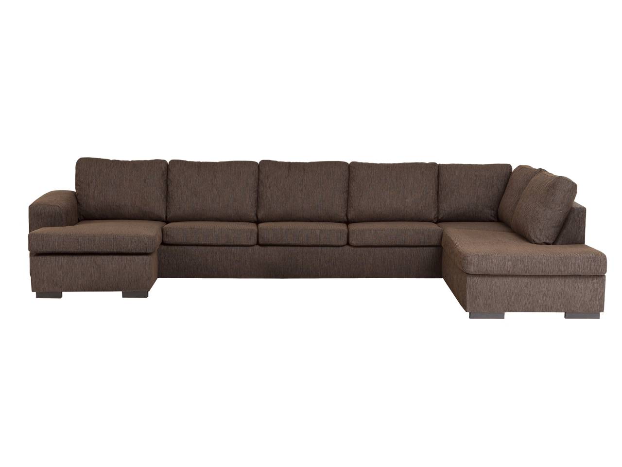 Brun U-Soffa, välj mellan öppet slut till höger eller vänster. Mått: B358 D153/193 H84 cm. Mer information