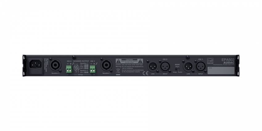 Klass-D slutsteg på 2x500W @ 4Ω, 2x250W @ 8Ω, bryggbart Mer information