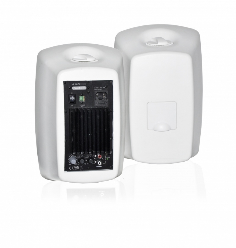Power Box 61 is a pair of two way loudspeakers consisting of loudspeaker with built–in stereo amplifier and second non powered loudspeaker ready to connect to active by Euroblock connector.