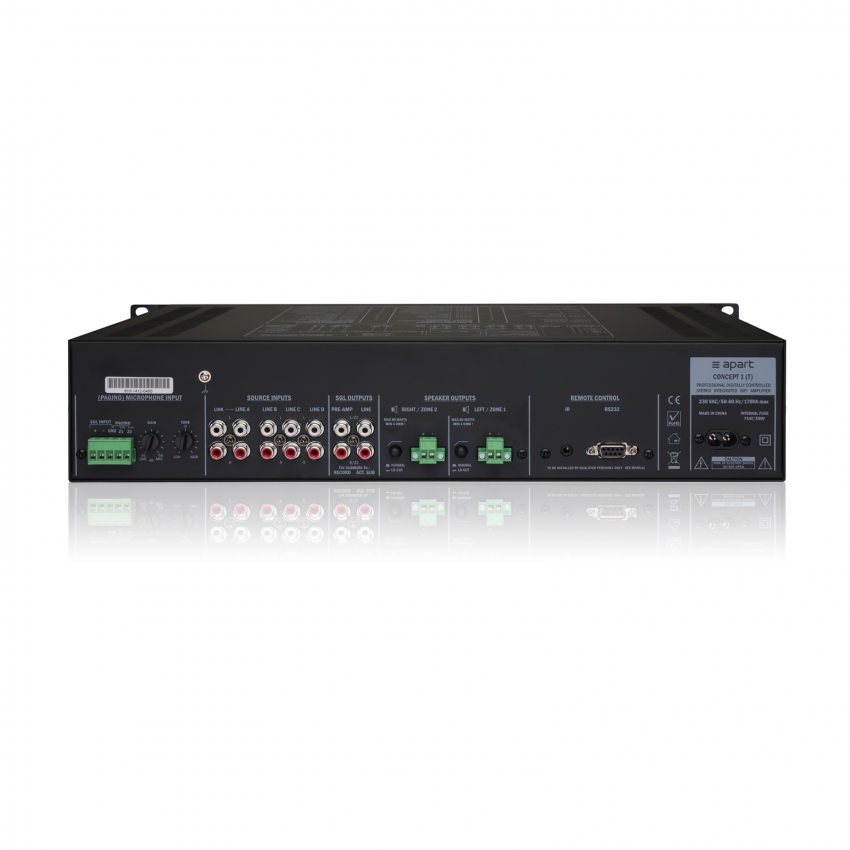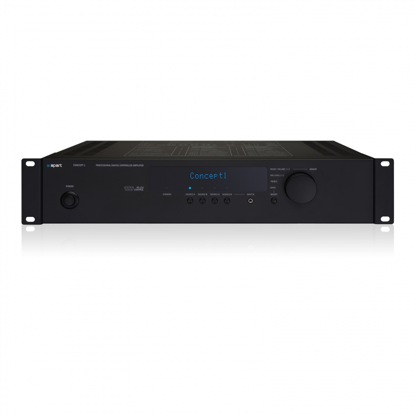 For a long time, installers worldwide have been unhappy with consumer electronics and they were looking for a professional integrated amplifier for use in commercial environments, boardrooms or small businesses designed for 24/7 operation. Therefore, Apart developed the CONCEPT1, a stereo or two mono channel (2 x 80 watts @ 4 ohms) amplifier for small and medium-sized projects.
